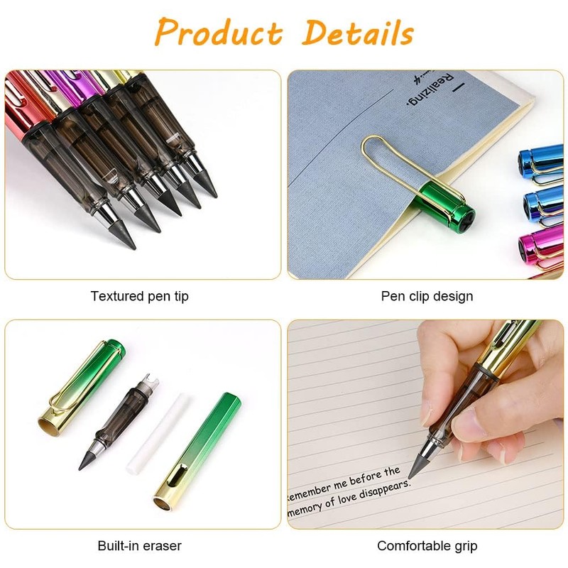 - High-quality material: the body of this eternity pen is made of ABS material and metal material, which is strong and not easy to break. The tip is made of an alloy material that can write smoothly, and the sense of use and handwriting are similar to ordinary pencils, which brings you a good writing experience.