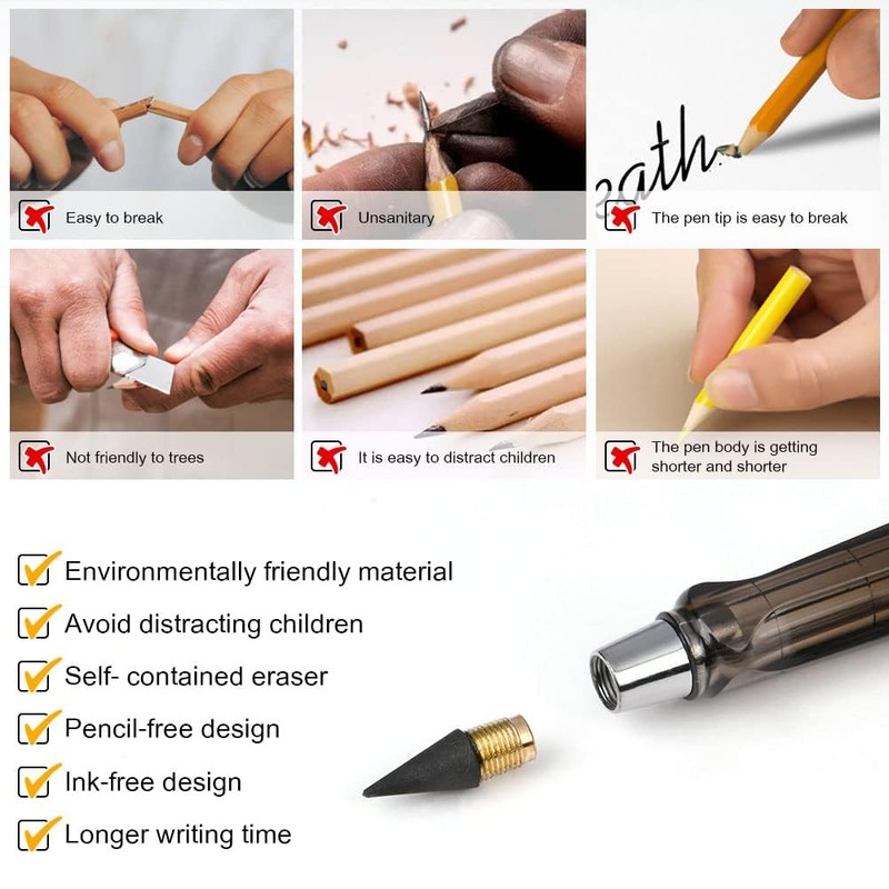 - Environmental protection concept: the design of the infinite pencil corresponds to the concept of sustainable development. The writing surface of an eternal pencil is 159 times that of a wooden pen. This is a pencil that is truly tree friendly. Every purchase is a guardian of a forest.