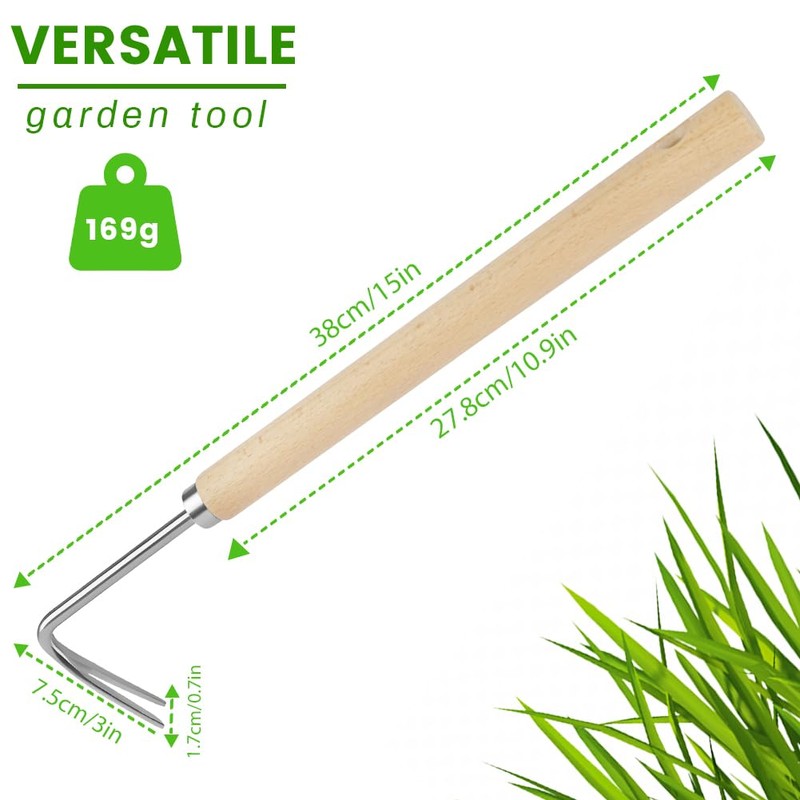 OFFCUP Stainless Steel Weed Remover Weeder Weeder Weed Remover Device Root Weeder Gardening Hand Uprooting Tool with Wooden Handle for Garden for Digging Transplanting Weeding