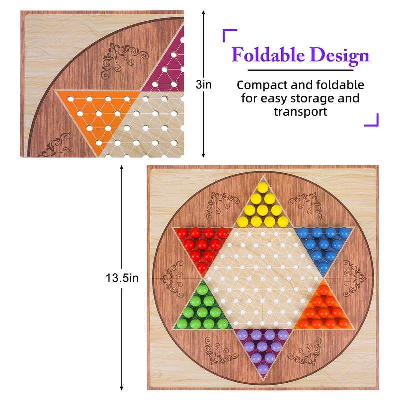 - 【Foldable & Portable Chinese Checkers Board】: Enjoy a classic strategy game with this 13.5-inch foldable chinese checkers board—perfect for travel, family game nights, or casual play. The compact design makes it easy to store and carry, so you can enjoy the game anywhere!
