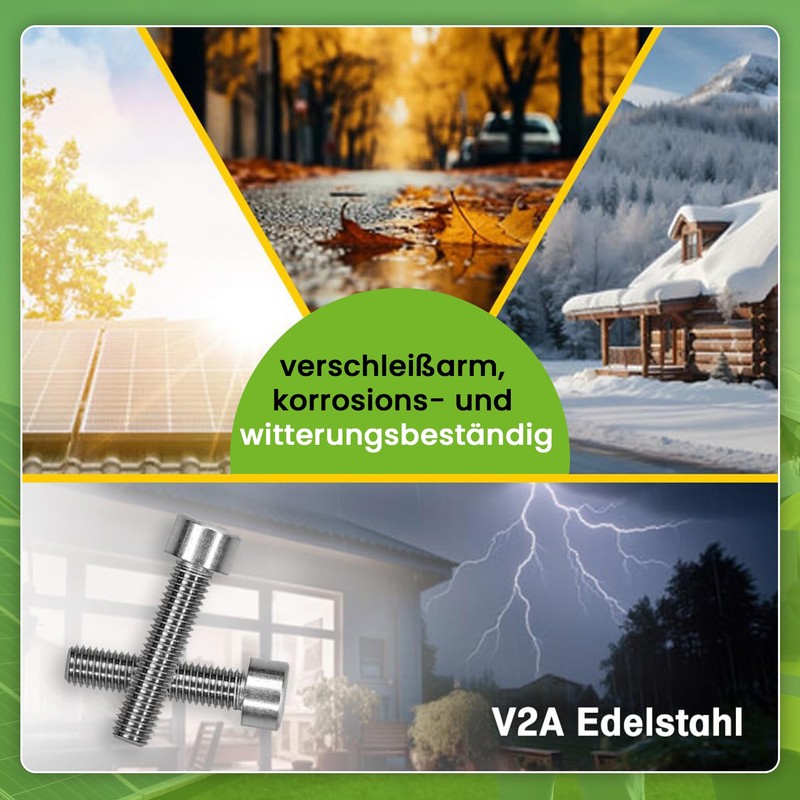 - Versatile use in various situations - Ideal for solar panel installations, mechanical engineering, automotive assembly, construction projects and shipbuilding. The precise thread ensures a reliable hold and can be used in combination with almost all materials.