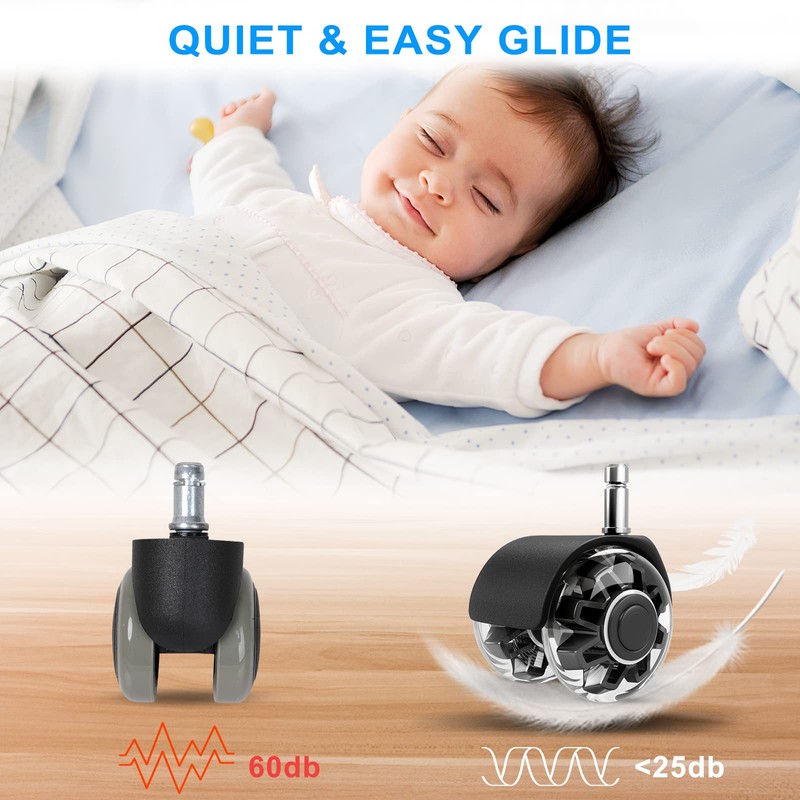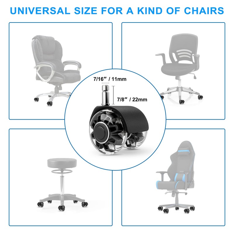 Office Chair Caster Wheels (Set of 5),Heavy-Duty Chair Wheels Support 2200lbs,Mute Rubber Chair Casters for Hardwood Floors and Carpet,2 Inch Universal Fit (Black)