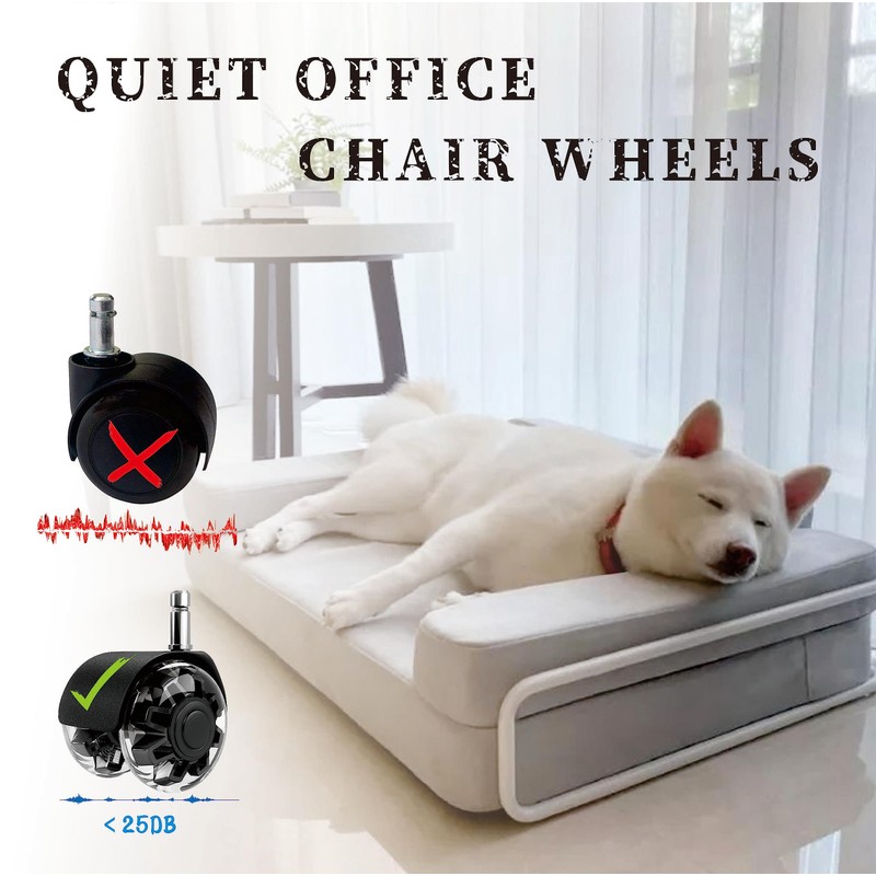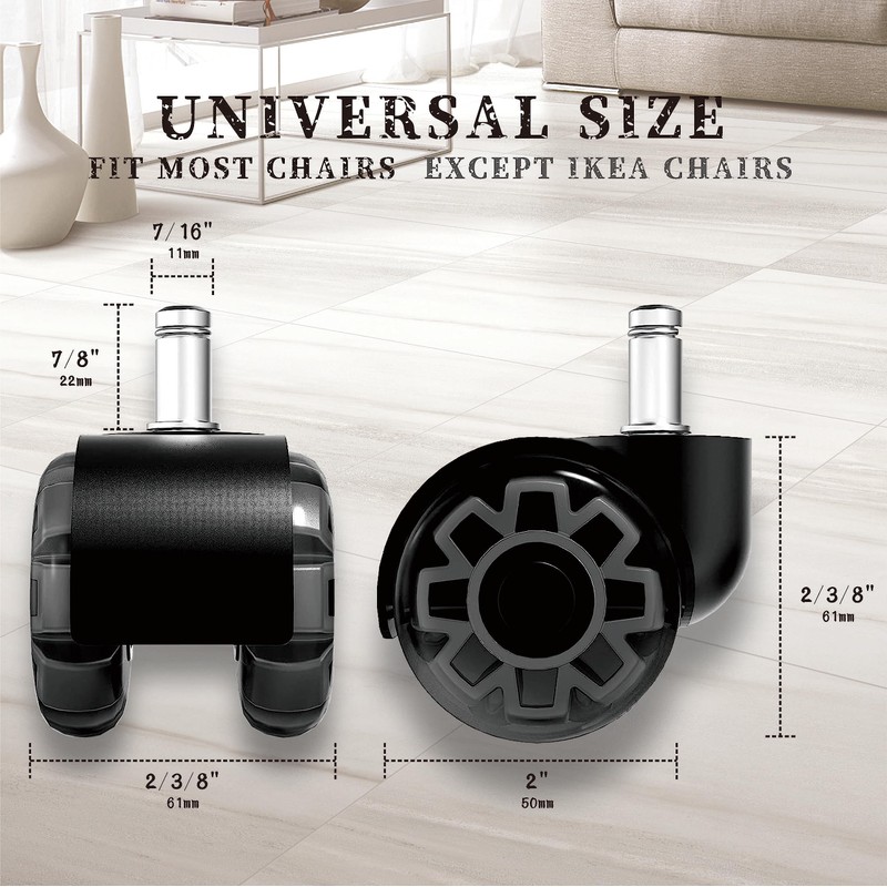 - [Heavy Duty And Silent - With A load Capacity Of 2200 IBS]Rollerblade wheels for office chairs can let you enjoy a quiet office space. Widened to 2 inches, the double-wide clear casters for office chairs are designed to absorb shocks releasing a heavy load capacity of 2200 lbs. Desk chair wheels does not make any sharp noises than other chair caster wheels euqipped on office chairs.