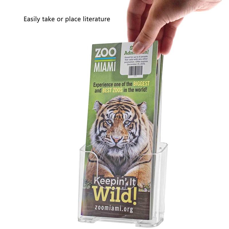 - Holds approx. 50 4”W literature, tri-fold brochures, pamphlets, flyers, rack cards and leaflets