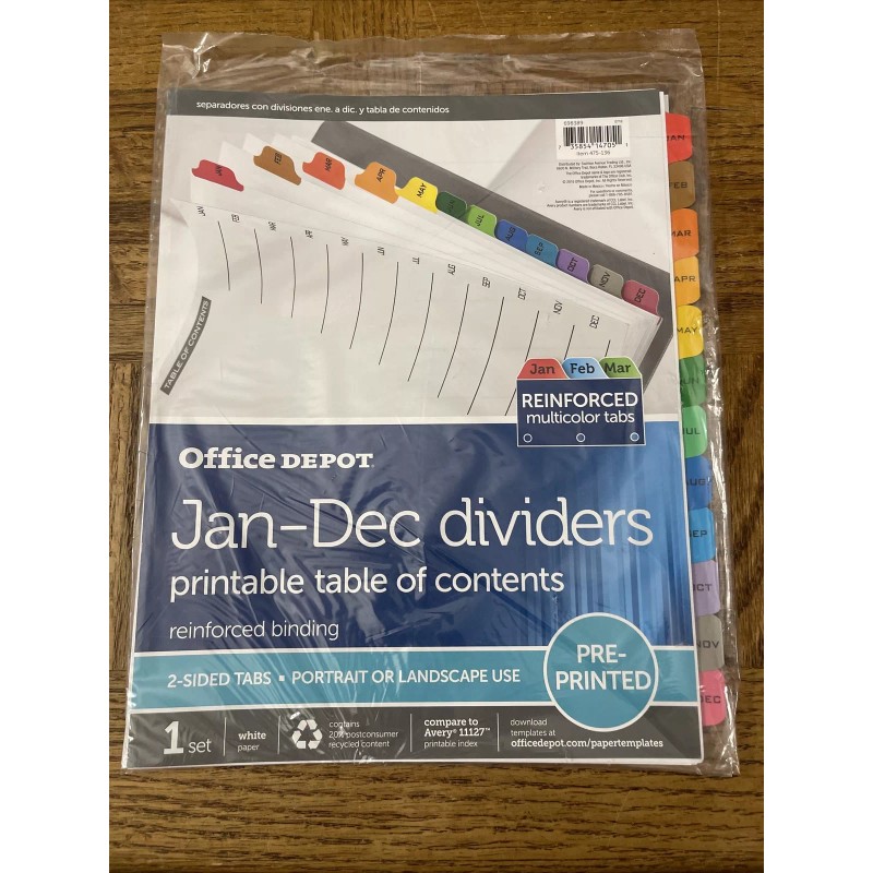 Stay organized all year round with these Jan-Dec dividers from Office Depot. The dividers come with a printable table of contents that makes it easy for you to label and find what you need quickly. Designed for use in offices and other professional environments, these dividers have been crafted with durability in mind, ensuring that they will stand up to frequent use without showing signs of wear and tear. The dividers are a great choice for anyone looking to improve their office organization, and they are available now in our online store.