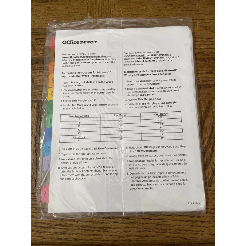 Office Depot Jan-Dec Dividers W/ Printable Table Of Contents