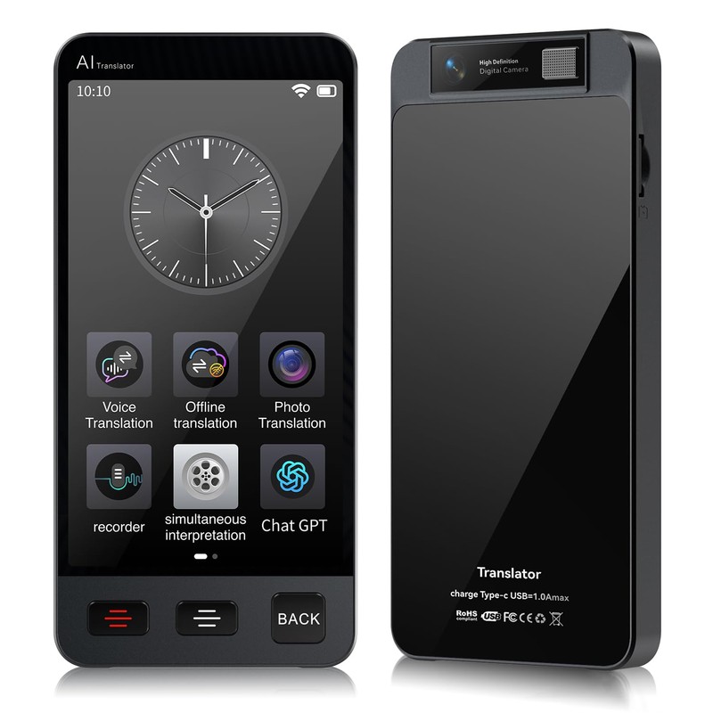 • 【Portable & Easy to Use】: The smart language translator has simple operating system and visual screen design, which is easy to use for everyone. This powerful Ai translator is portable and lightweight in your pockets and backpacks, whether you're studying, working, or traveling, it will become your ideal companion.