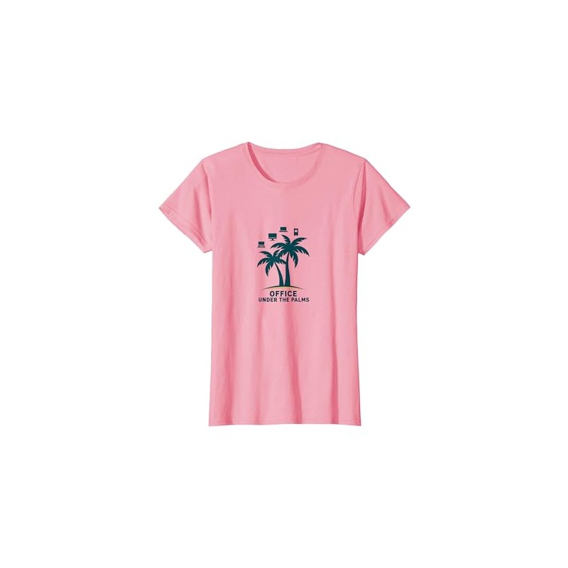 Office Under The Palms: Tropical Remote Work Logo T-Shirt, Women, Pink