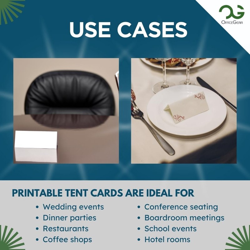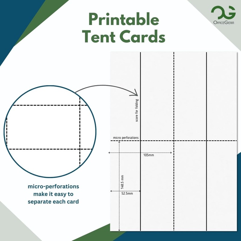 OfficeGear Tent Cards 4-up (25 Sheets - 100 Cards) 52 x 148mm - Perforated Printable Folding Table Name Place Cards 170 GSM for Conferences, Exhibitions, Weddings - incl downloadable Design Template