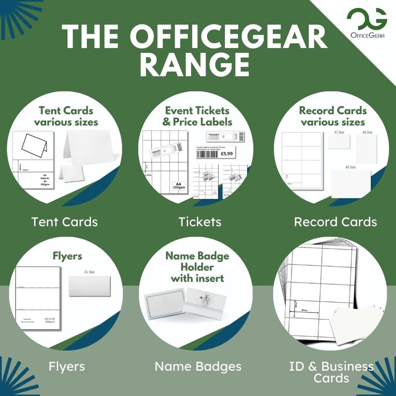 - OTHER USEFUL PRODUCTS AVAILABLE - Explore the range of OfficeGear Name Badges, Badge Insert Cards, Business Cards, Event Tickets, Barcode Shelf Inserts, Record Cards, Flyers and Report Card