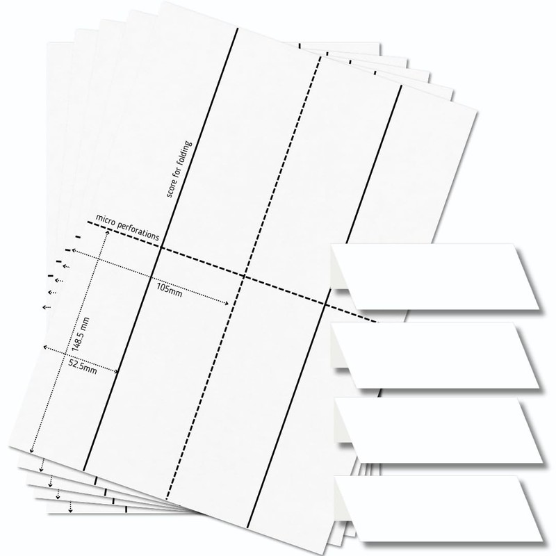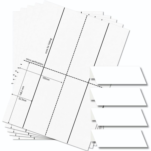 - PERFORATED CARD EASY TO DETACH – 52.5mm x 148mm (when folded) microperforated scored cards, easy to separate and useful for seating cards, place settings, conference table name cards, wedding reception seating cards, price signage, and general notices