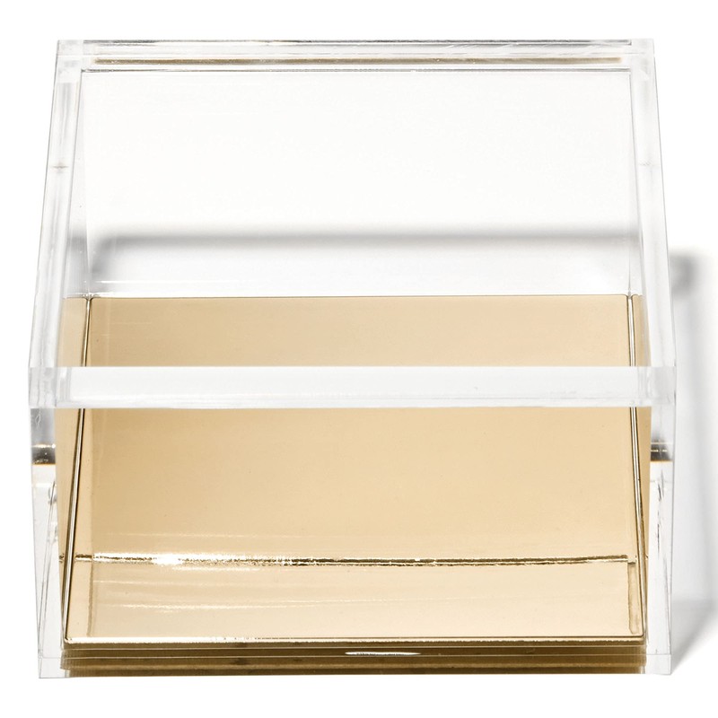 OfficeGoods Acrylic Desk Organizer w/Gold Base – Functional & Elegant Odds & Ends Box for Display or Storage – Perfect for Home or Office, Kitchen, Bathroom Vanity, Curio Display - Large