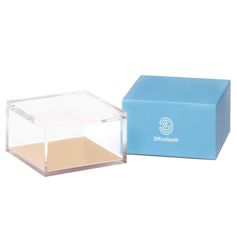 - Organize in style with OfficeGoods Decorative Acrylic Box with Lid. An attractive multi-purpose box designed to help you tidy up your desk, but can also be used anywhere at home, school, or office. Beautiful storage for your candies, jewelry, cosmetics, school supplies, or as a bobby pin holder.