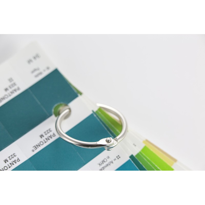 1-Inch loose leaf rings for binding, fabric swatches or similar samples. Chrome finish, easy opening, securely locking. Box of 100 each.