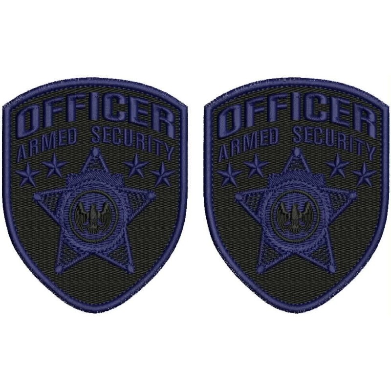 OFFICER ARMED SECURITY 2 EMB PATCH SHOULDER 4.5X3.7 5 HOOK ON BACK NAVY BLUE ON