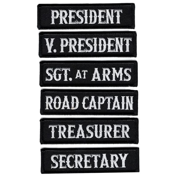 Officer Title Rank Vest MC Biker Club Patch 6pc Set - Iron on sew on B064