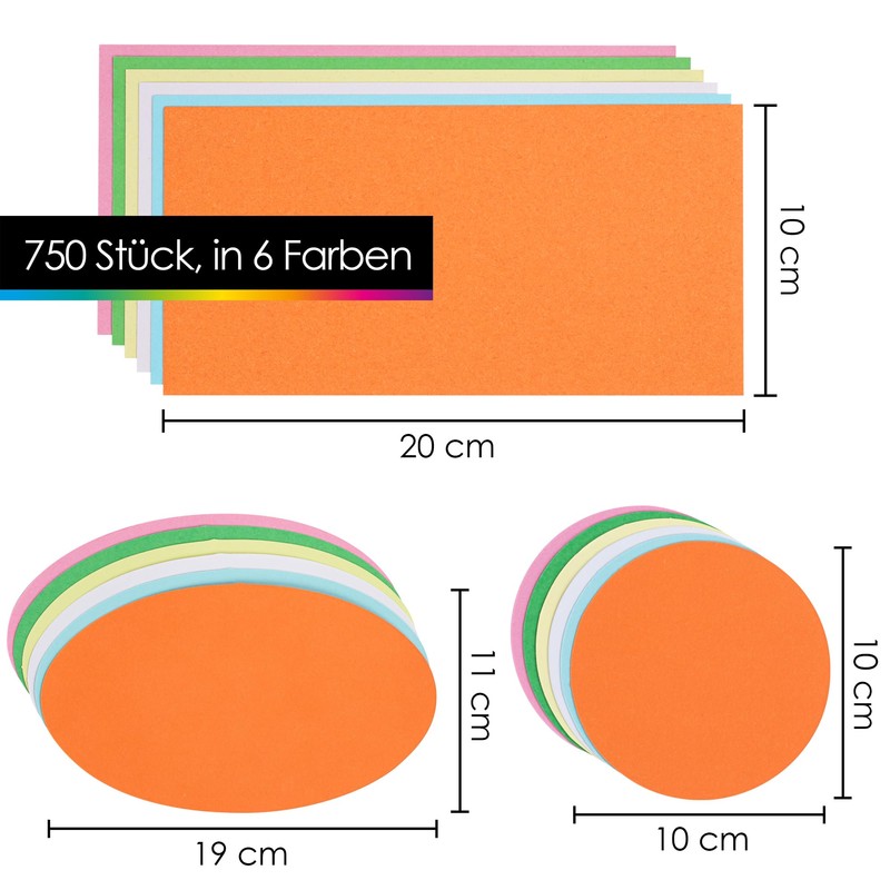 OfficeTree 750 x Presentation Cards Set, Colourful, Round, Oval and Rectangular, Metaplane Cards, Presentation Cards in 6 Assorted Colours, Presentation Set as Seminar Accessories for Presentation and