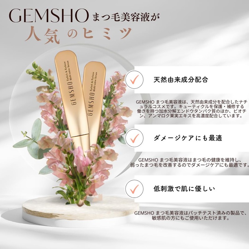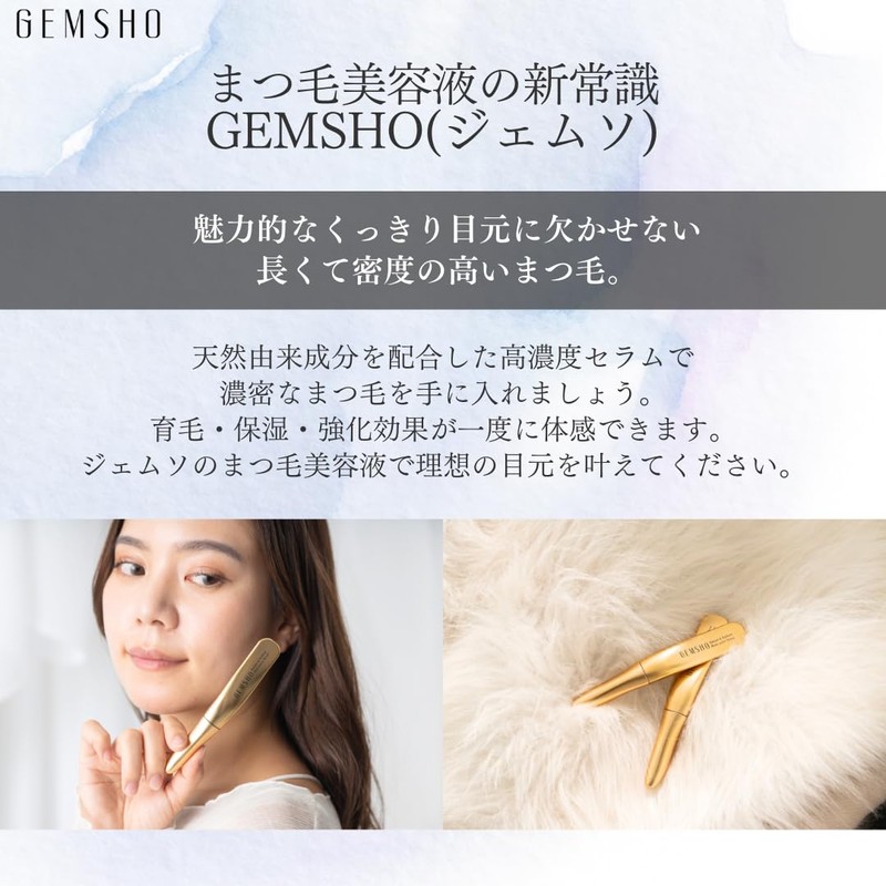 (Official) GEMSHO Eyelash & Eyebrow Serum, Eyelash Serum, Set of 2, Eyebrow & Hairline OK Eye Care, Intensive Damage Care, Fine Brush Type, Easy to Hold Design, Gift, High Concentration, Natural