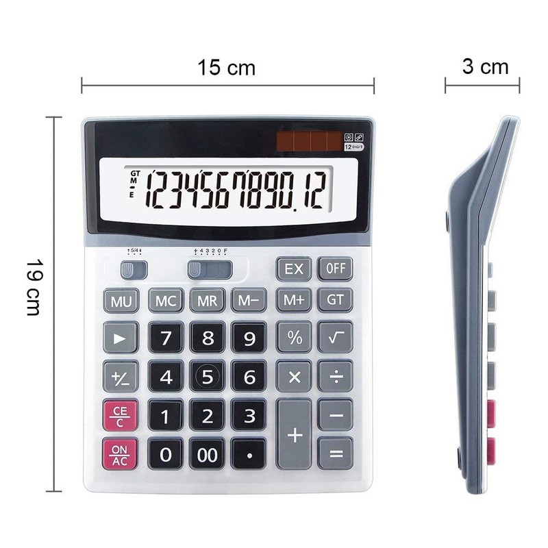 OFFIDIX Calculator, 12 Digit Calculator, Large Bookkeeping, Desktop Calculator, Stylish, Large Display, Solar Calculator, Dual Power Supply, Portable and Convenient