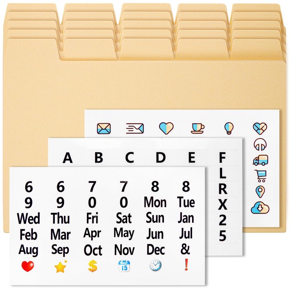OFFILICIOUS 25 Manila Index Card Dividers 4x6 - Index Card Organizer Dividers with Tabs & 108 Stickers for Index Cards 4x6 - Recipe Card Dividers, Note Card Organizer, Monthly Dividers, Card Stock