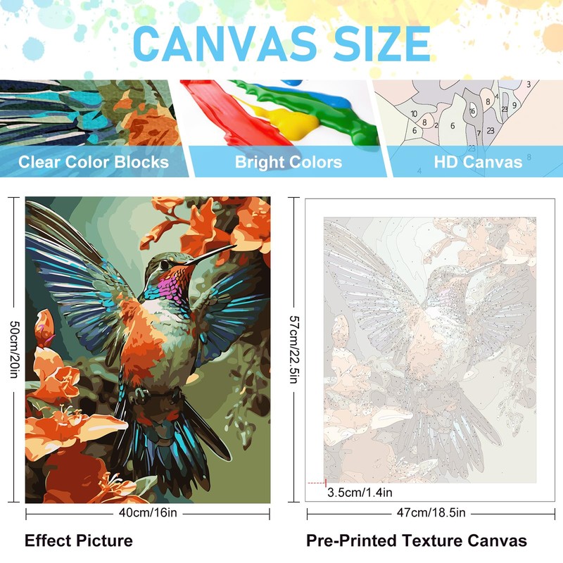 Offito Paint by Numbers Kit for Adults- Hummingbird Adult Paint by Number Kits on Canvas for Beginners, Hummingbird DIY Acrylic Oil Number Painting Kits for Home Wall Decor Gift 16"x 20" (without Frame)
