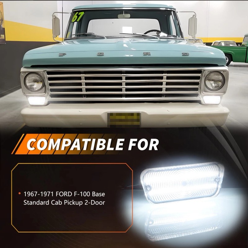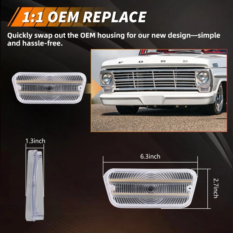 OFFKAT 2X Clear Switchback LED Front Parking Signal Light For 1967-1971 Ford F100 Truck
