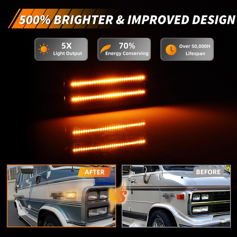 OFFKAT Smoked Amber LED Side Marker Lights For 85-95 Chevy G10 G20 GMC G1500 G2500 Van
