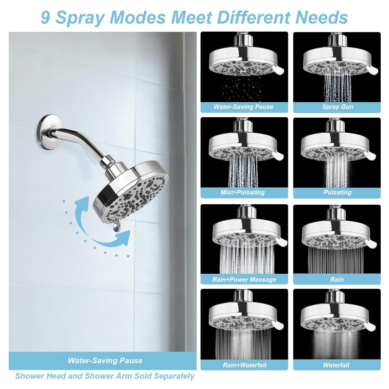 - [9 Modes Fixed Shower Head]: Enjoy the benefits of clean, refreshing water with our Filtered Fixed Shower Head and say goodbye to hard water problems. includes targeted massage and relaxing spray options for a spa-like experience.