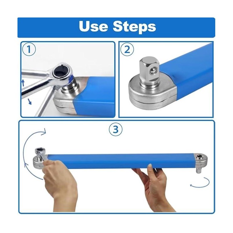 Offset Extension Wrench Set, Off Set Extension Wrench 15.4" with 1/4",3/8",1/2" Square Drive Adapters and 1/4" Socket, Universal Extensions Wrench