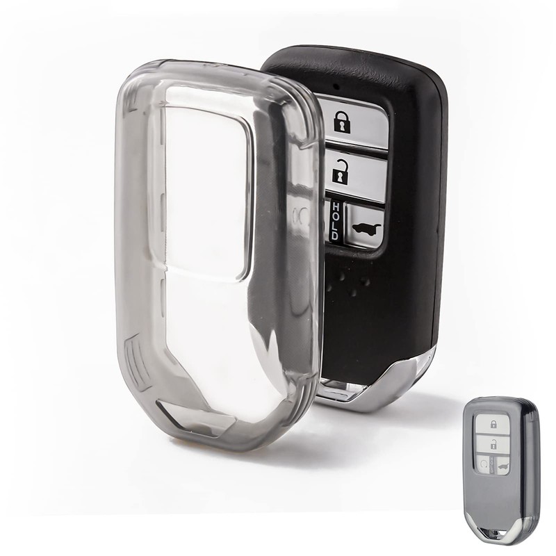 OFFWEGO Key Fob Cover for Honda Accord Civic CRV Pilot Ridgeline Odyssey Soft TPU Key Case Protection for Honda Smart Protector Remote Start Key, Transparent Black