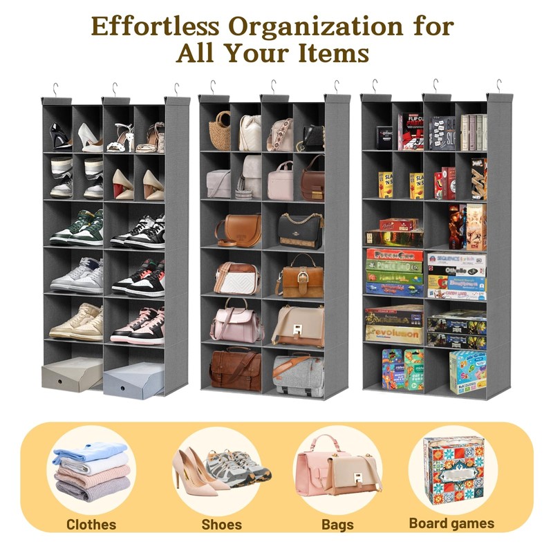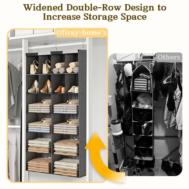 • 【6 Tiers & 16 Compartments, Extra Large for Closet】Ofiray-Home hanging closet organizer is the only 2-in-1 design with both large and small section pockets among all similar products. Its *16 compartments satisfy more classification needs compared to traditional 12 partitions. A must-have storage solution for small spaces, making items more organized and freeing up more space—an optimal choice in all closet organizer products.