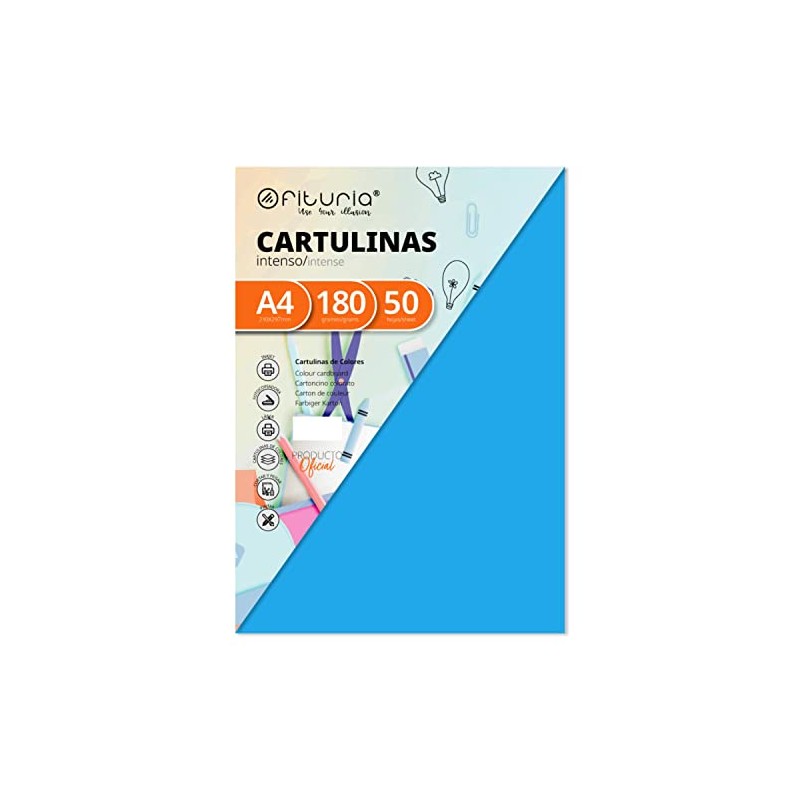 OFITURIA FAB-17092 Pack of 50 Cartulinas Azul Medio Tamaño A4 180g