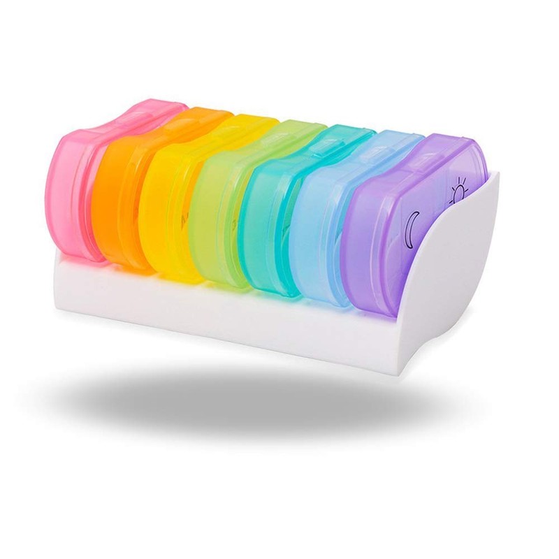 - Transparent and colour-coded pill box, to avoid confusion with always the right day.