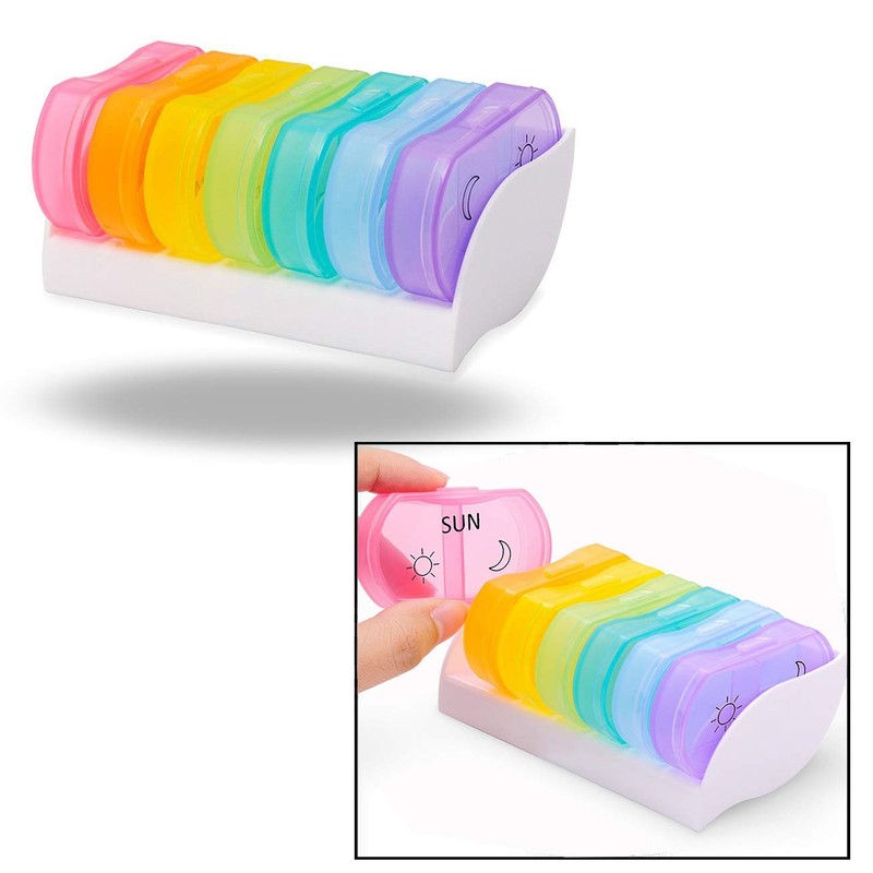 OFKPO Pill Box for 7 Days, Tablet Box with 2 Compartments (Rainbow)