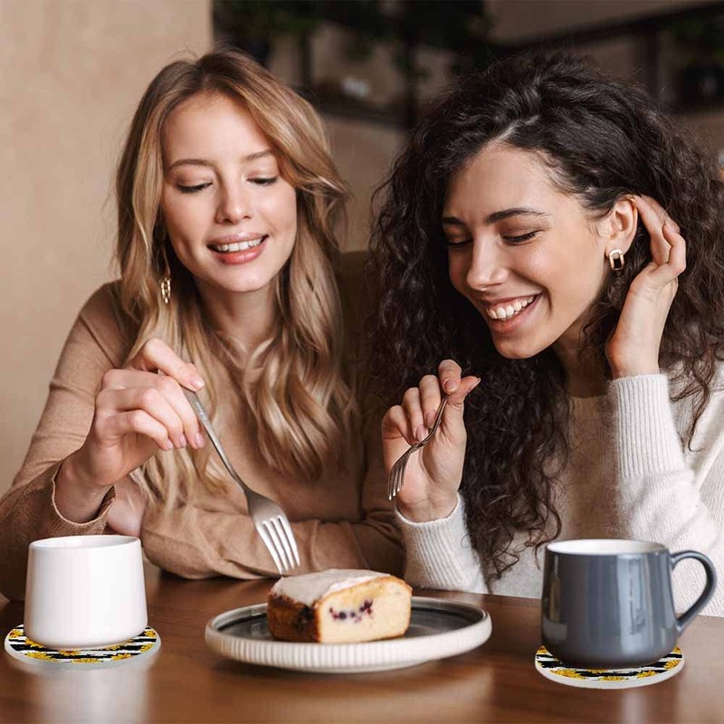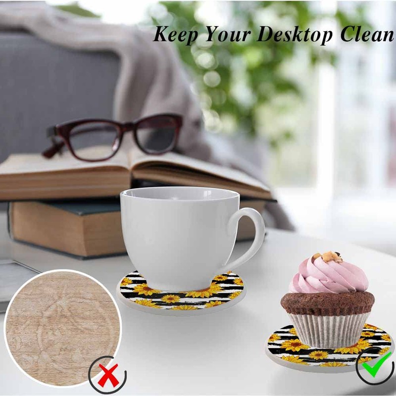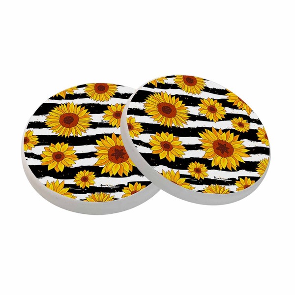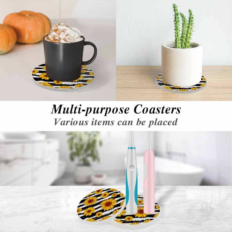 oFloral Sunflower Coasters for Drinks Wavy Stripe Vibrant Summer Fall Cups Place Mats for Home Decor Set of 2, 4 Inch