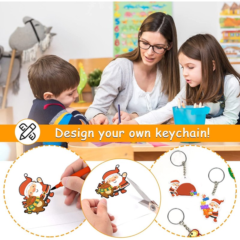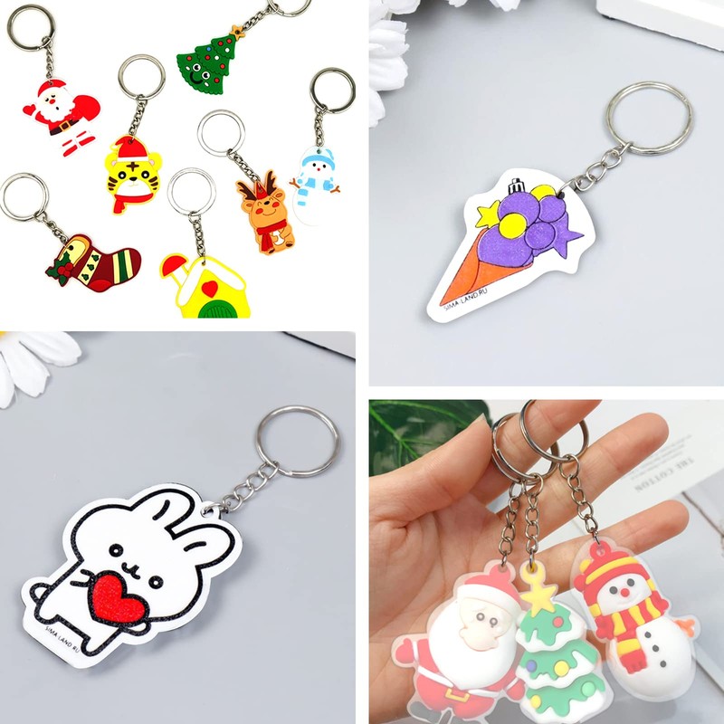 - 【Creative Gift】-- Come with 100 keyrings with chain, it's convenient for using these blank shrinky dink film to make personalised key fobs, gift tags, letters cards, lovely animals, DIY pendants, earrings, keychains, jewellery, zipper pulls, bookmarks and ornaments etc, that will be a very creative, special and warm gift for birthday, Xmas, festival. Using your imaginary to create.