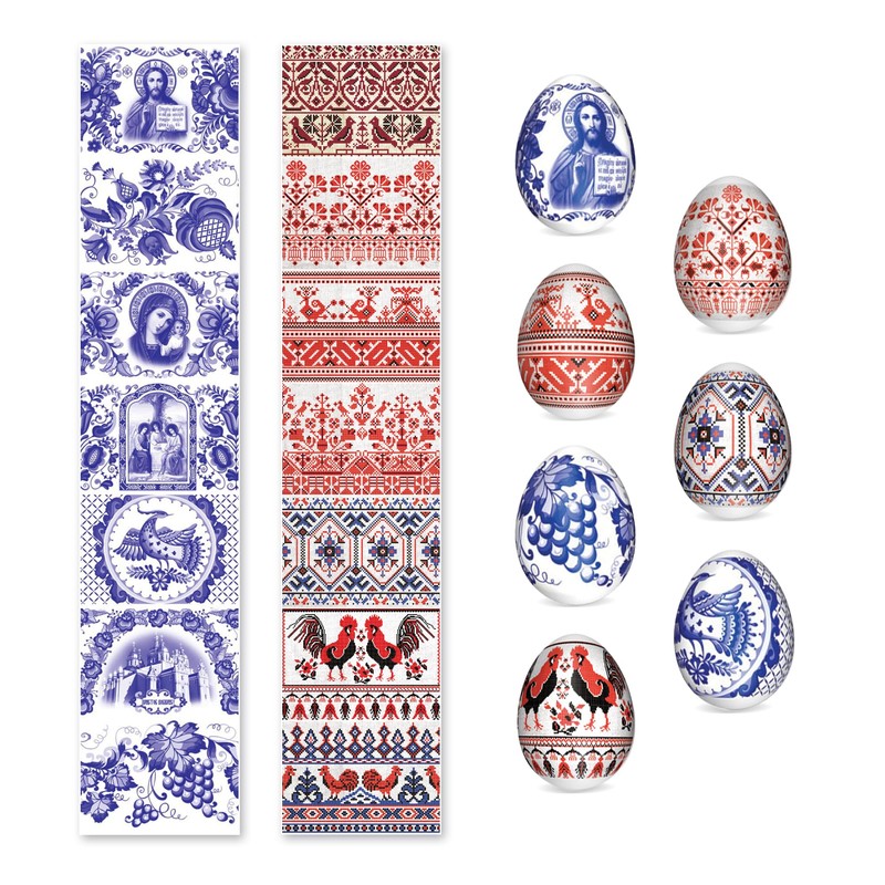 OFXDD 14 Pcs Egg Wraps Easter Set - Traditional Easter Egg Shrink Wrappers - Ukrainian Easter Egg Decorating Kit - Othtodox Easter Egg Wrappers for Pysanka - Thermo Easter Egg Sleeves