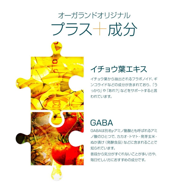 また、プラス成分として、冴えや健康のサポートに嬉しい、イチョウ葉エキスとギャバを配合しました。