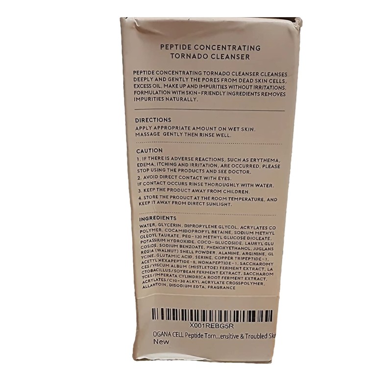 OGANA CELL Peptide Tornado Cleanser 4.06 fl.oz. (120ml) - 200ppm & Walnut Shell Pellets Contained Moisturizing Facial Scrub Wash - Removes Dead Skin Cells for Sensitive