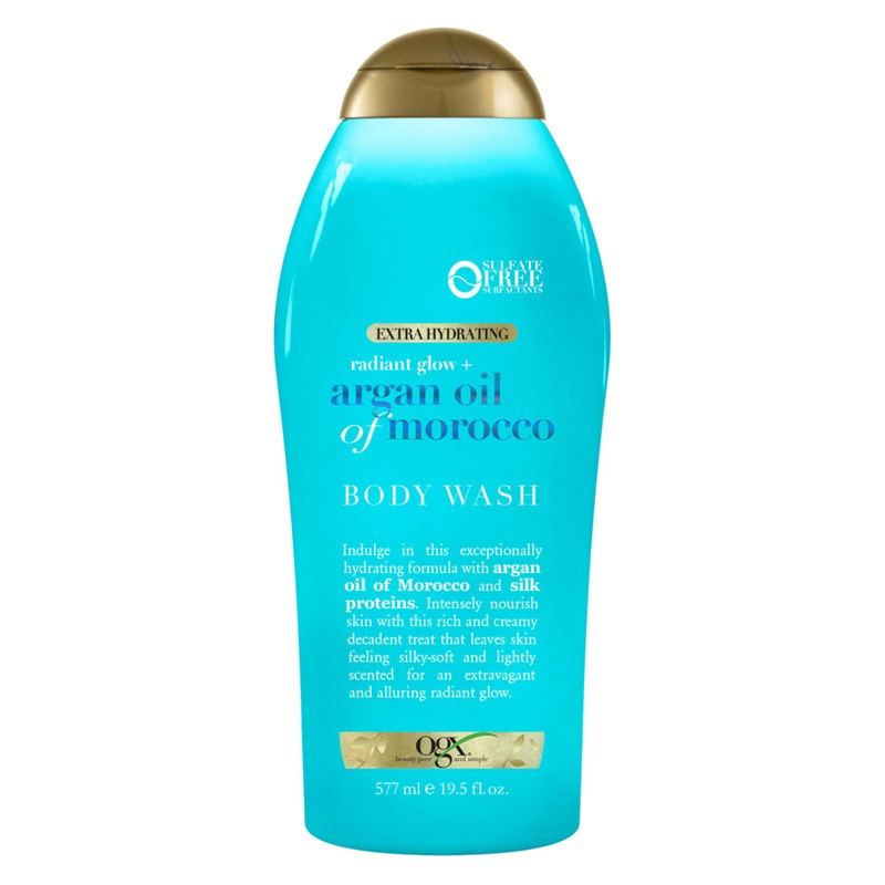 - GLOWING SKIN AS YOU LATHER UP: The 19.5-ounce bottle of OGX Radiant Glow plus Argan Oil of Morocco Extra Hydrating Body Wash for dry skin helps hydrate as it cleanses skin, giving it a beautiful radiant glow