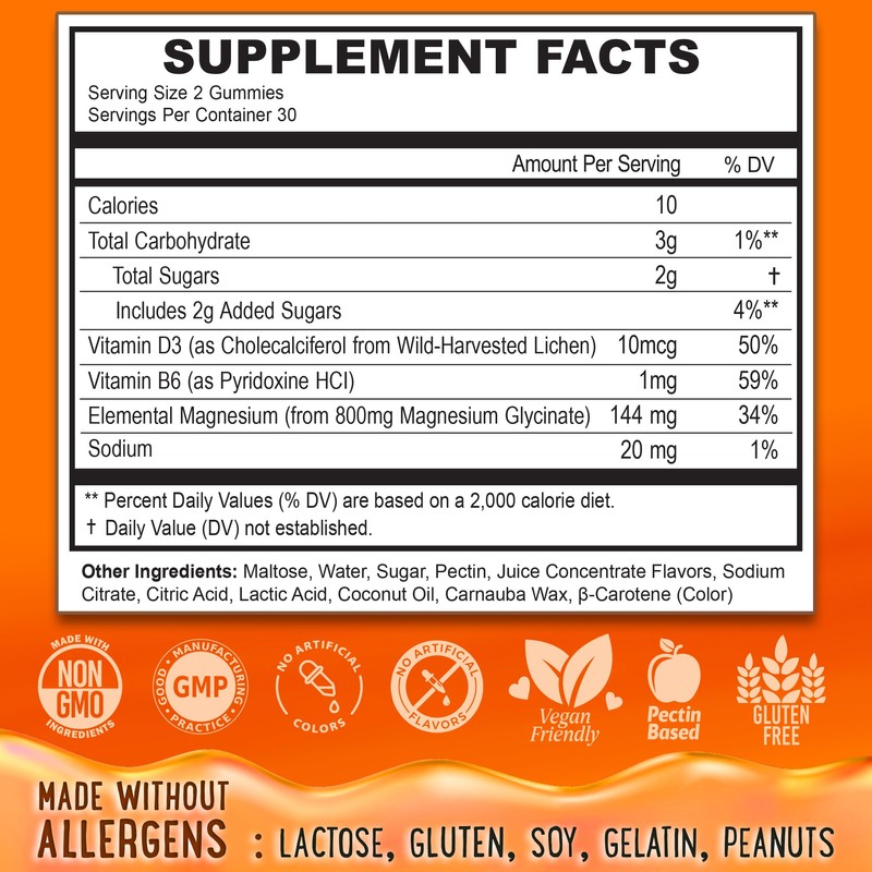 - Gentle and Effective Magnesium Support for All Ages: Each magnesium glycinate gummy delivers 400mg of magnesium glycinate with vitamin B6 & D3, offering enhanced absorption to support muscle health, relaxation, and restful sleep for the whole family.