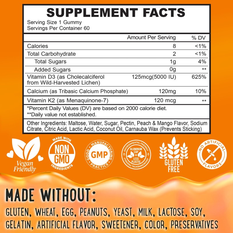 - Synergistic Nutrient Trio for Strong Bones and Teeth: Formulated with Vitamin D3, K2 (120 mcg), and Calcium (120 mg) to work together, directing calcium to bones and teeth where it's needed most, supporting overall family health.