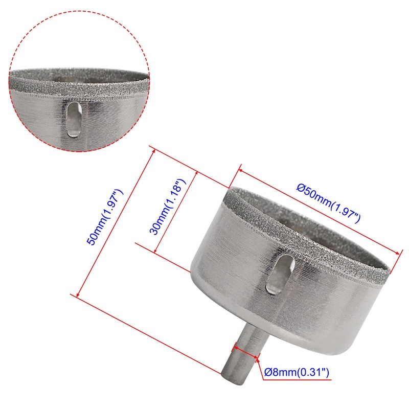 Ohamtes 1Pcs Cutting Diameter 50mm(2") Diamond Drill bits, Hollow Drill bits, Hole Saw Diamond bits, Suitable for Opening Holes in Glass, Ceramics, Marble and Other Materials