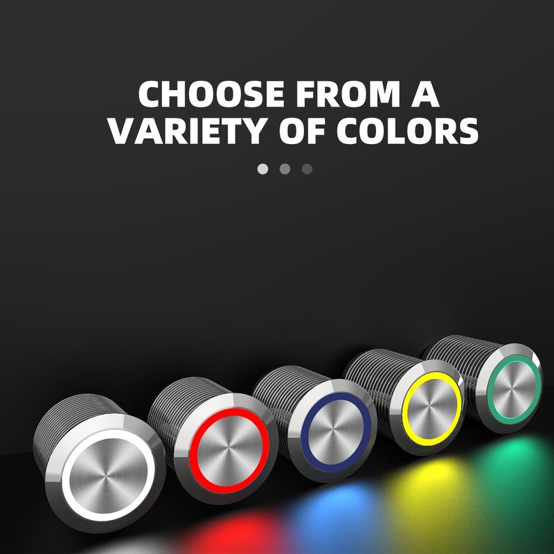 - Our metal button switches offer LED lights in 5 colors, Red, Green, Blue, White, Gold.
