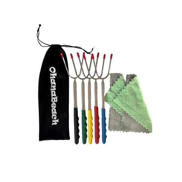 OhanaBeach® Barbecue Skewers, Grill Fork, 5-Piece Set, Telescopic 30 cm - 116 cm, Used for Camping, BBQ, Barbecue Party etc. Barbecue Skewers Campfire, Stick Bread Skewers, Campfire, Extendable