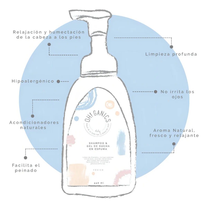 Ohganics shampoo & body wash en espuma de 440 ml natural