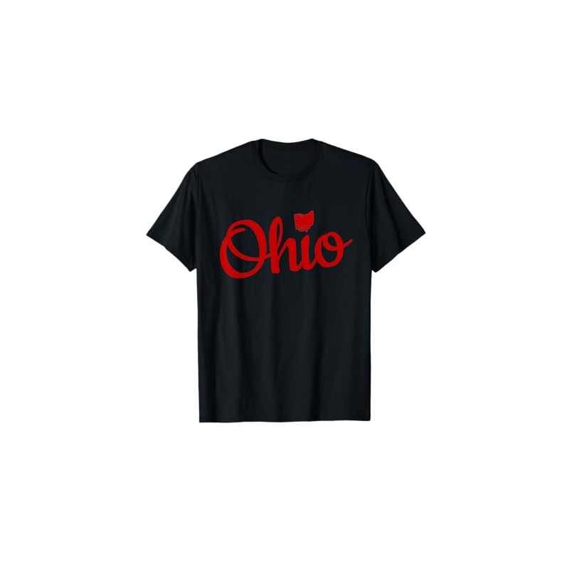 Ohio Shirt OH Red Script Love Home Pride Map Distressed Tee T-Shirt