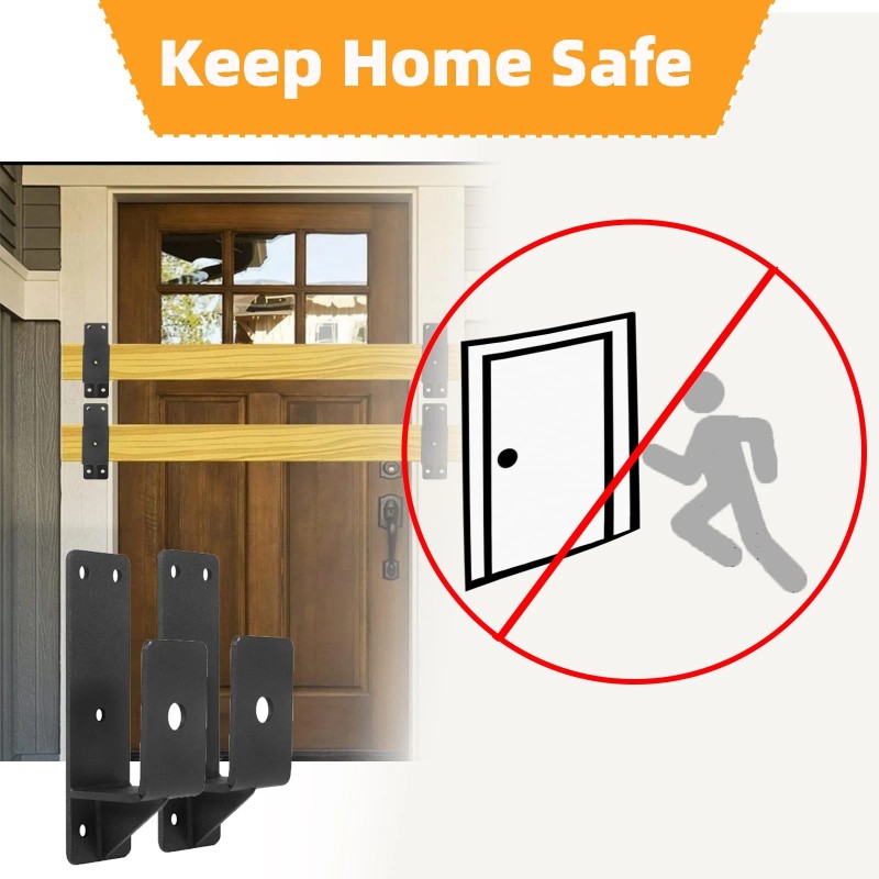 {Premium Material}: Our door barricade brackets are made of high-quality iron, which is strong and not easy to deform. The flat and smooth surface is painted with anti-rust paint, is not easy to rust, and has a long service life.