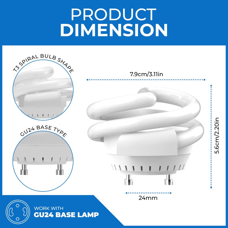 • Easy Installation: These compact fluorescent bulbs feature a convenient twist-and-lock GU24 base, making installation quick and simple in various fixtures