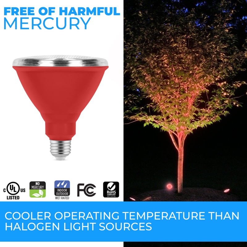 - EXCELLENT FEATURE: Our par38 floodlight comes in an attractive red color that has a wattage rating of about 15 watts which is equivalent to a 100-watts halogen bulb. It has an operating voltage of around 120 volts and is non-dimmable. They are completely weatherproof and ideal for party decorations and holiday lightings.